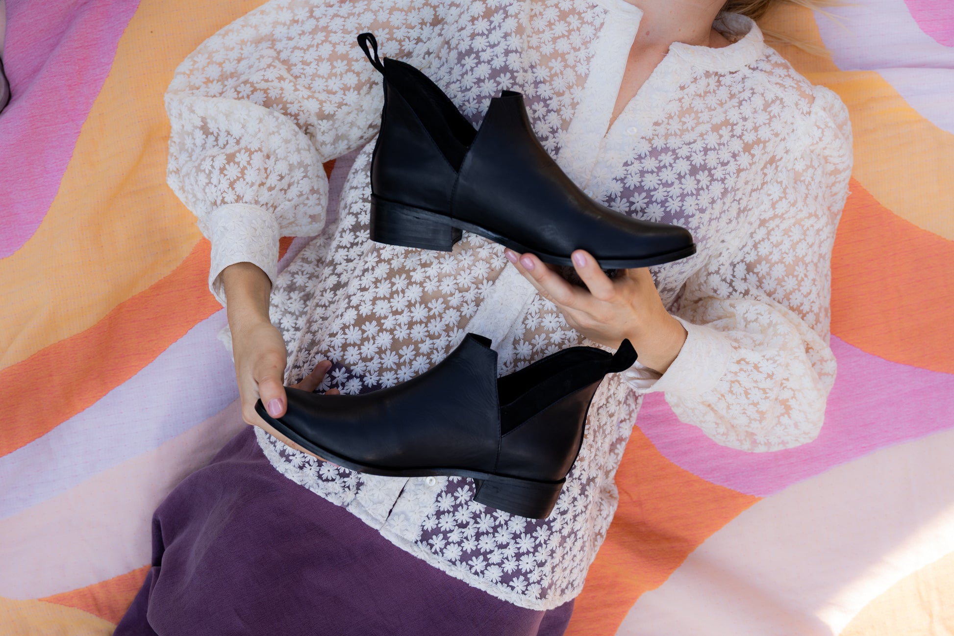 Nuestros botines Carmel fueron diseñados para acompañarte a todas. Confeccionados en cuero negro mate y detalles en cuero ante negro, lo convierten en unos zapatos muy versátiles que puedes combinar con infinitos looks y siempre van a quedar increíbles. Tienen una altura de 3,5 cm, perfectos para poder caminar cómoda todo el día. Let’s walk the world!